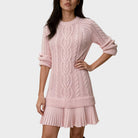 VALERIA™ combina el tejido de punto acogedor con la sofisticación femenina. Confeccionado en forma de vestido-suéter de corte recto y favorecedor, presenta un delicado bajo plisado que añade un toque chic y divertido a su diseño trenzado atemporal. Ideal para los días frescos, este vestido pasa sin esfuerzo de un conjunto casual a un look de noche elegante. Combínalo con medias y botas para un look acogedor o con tacones para un aire más refinado.